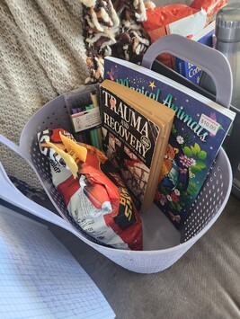 Get a sturdy basket or tub. It doesn't have to be pretty. It just has to hold the essentials that cause panic when they are missing.