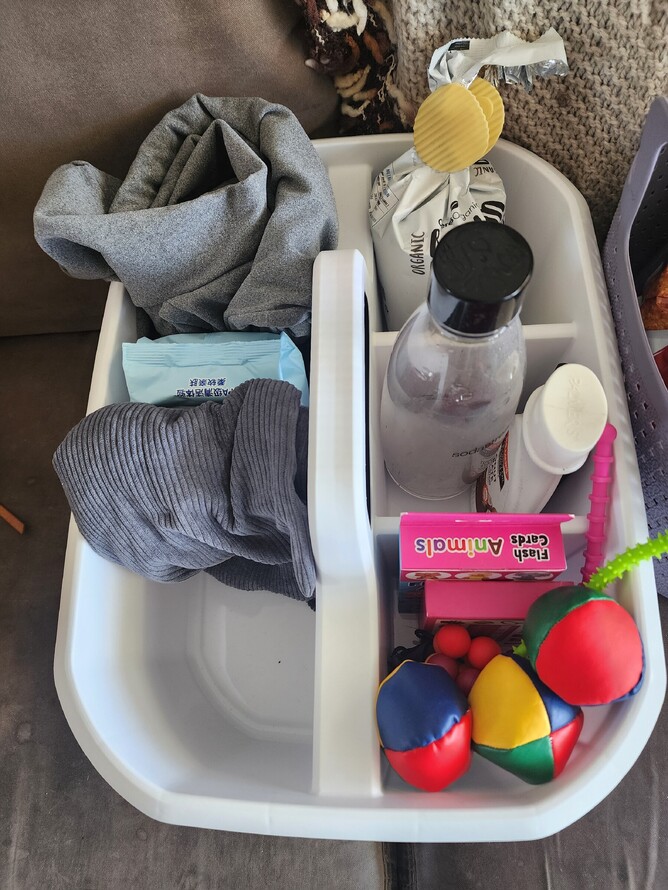 By having these items pre-packed in a caddy, you aren't frantically searching for them while everyone is already yelling in the car. You are simulating the calm arrival before you even leave.